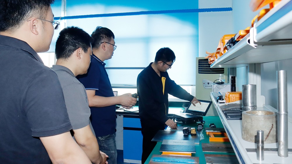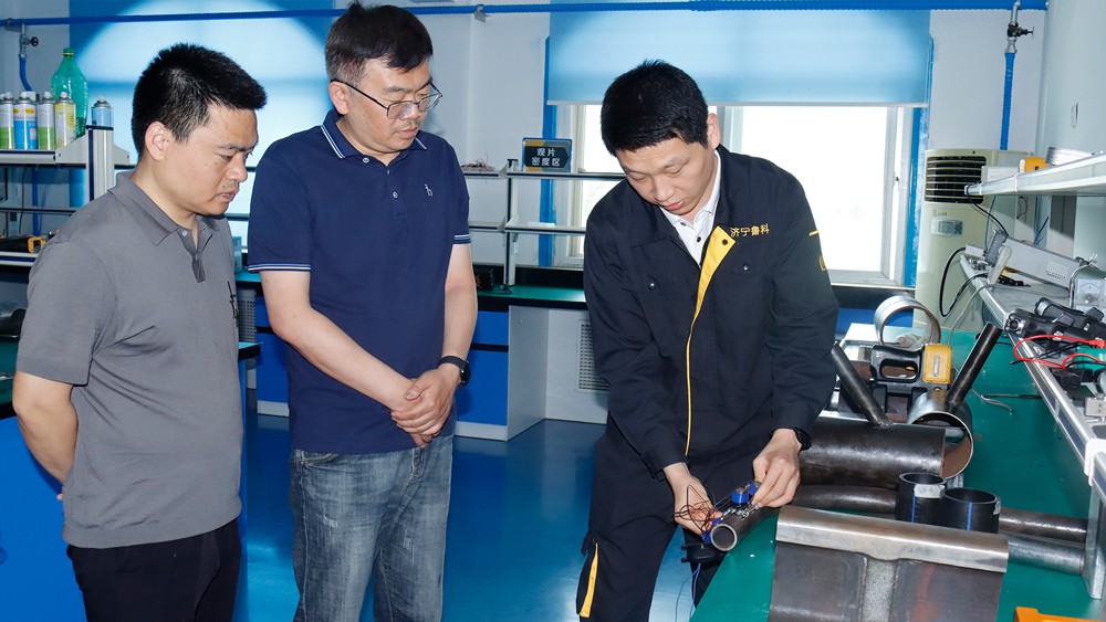 隨后我公司薛建祥總經(jīng)理陪同陳副院長(zhǎng)一行參觀我公司綜合辦公樓、研發(fā)生產(chǎn)中心、埋地管道實(shí)訓(xùn)基地、工程公司辦公樓,詳細(xì)了解了我公司在便攜磁粉探傷儀、ACFM交流電磁場(chǎng)檢測(cè)儀、腐蝕電磁測(cè)厚機(jī)器人等產(chǎn)品的研發(fā)、生產(chǎn)過(guò)程,對(duì)我公司在產(chǎn)品研發(fā)方面的工作表示認(rèn)可,并規(guī)劃了雙方要下一步交流合作的方向,對(duì)我司子公司工程公司在埋地鋼制管道及PE管道的取得的檢測(cè)成績(jī)給予贊賞。